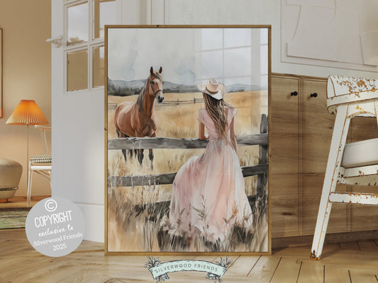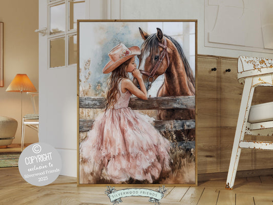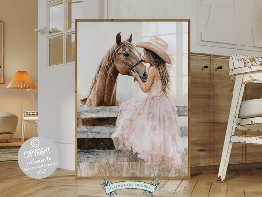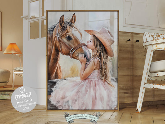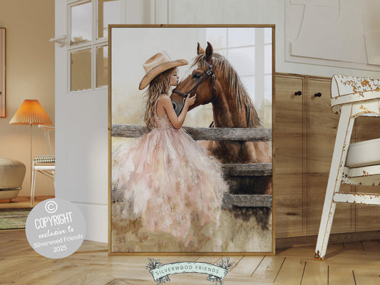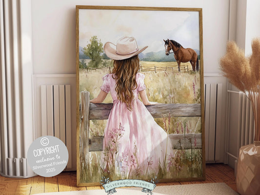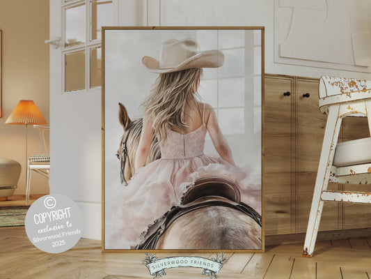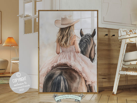 Little Blonde Cowgirl Brown Horse Nursery Print