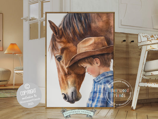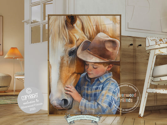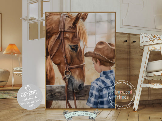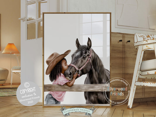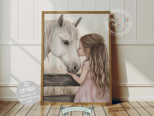 Little Girl Tabby Cat Barn Nursery Print - 001