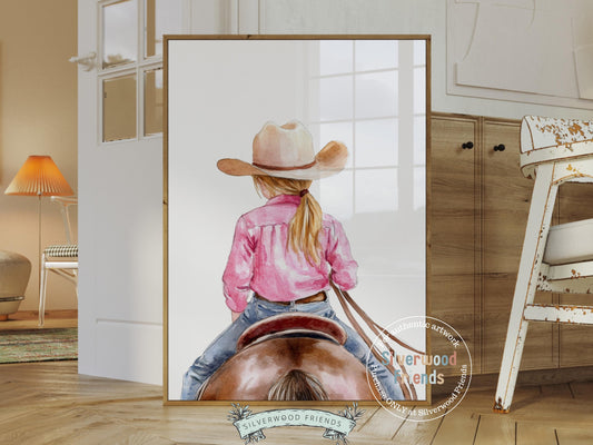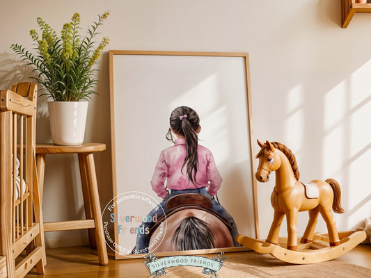 Little Curly Haired Cowgirl Horse Riding Nursery Print - 002