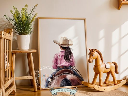 Cowgirl Nursery Print - Black Haired Little Cowgirl - 003
