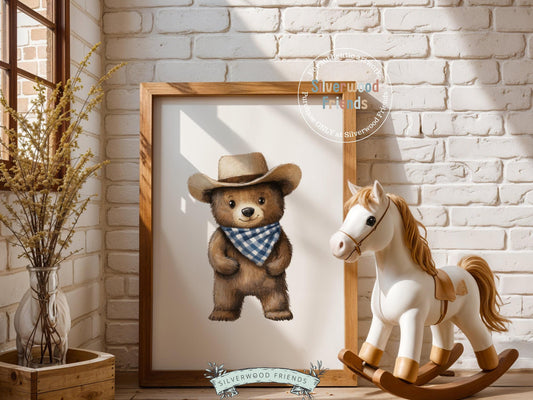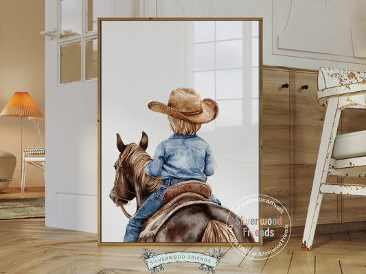 Blonde Cowboy Horse Riding Nursery Print - 001